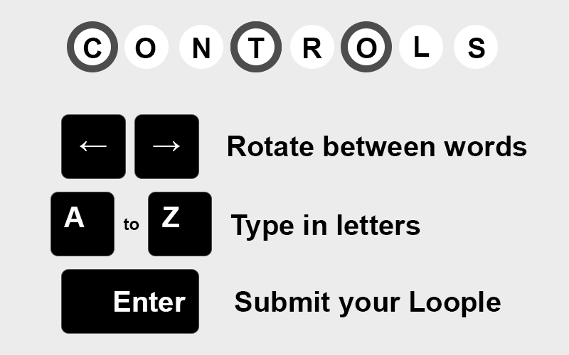 Can you solve the loop? In Loople, three to four random words are looped together, with the ending of one word being the beginning of the next. Your challenge: figure out all the words in 15 tries or less!